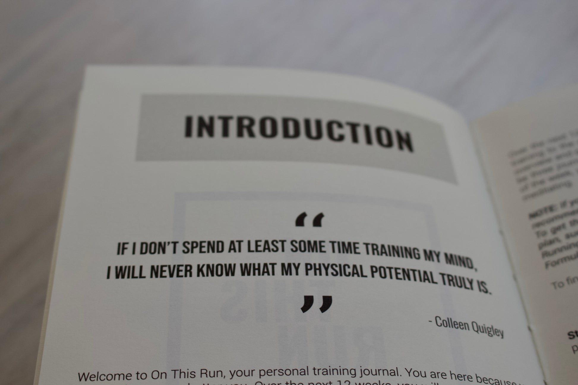 Inside, you'll find 12 weeks' worth of journal prompts, mental exercises, and inspiring quotes leading up to race day.